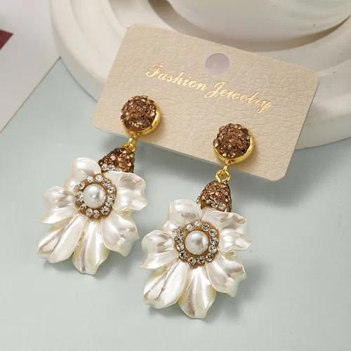 Step into effortless elegance with the Golden Petal Shell Earrings from Laadé. These radiant floral studs are crafted from luminous shell petals and accented with sparkling rhinestones that catch the light from every angle. Finished with 14K real gold plating, they combine modern simplicity with timeless charm — a must-have for casual outings or special evenings.