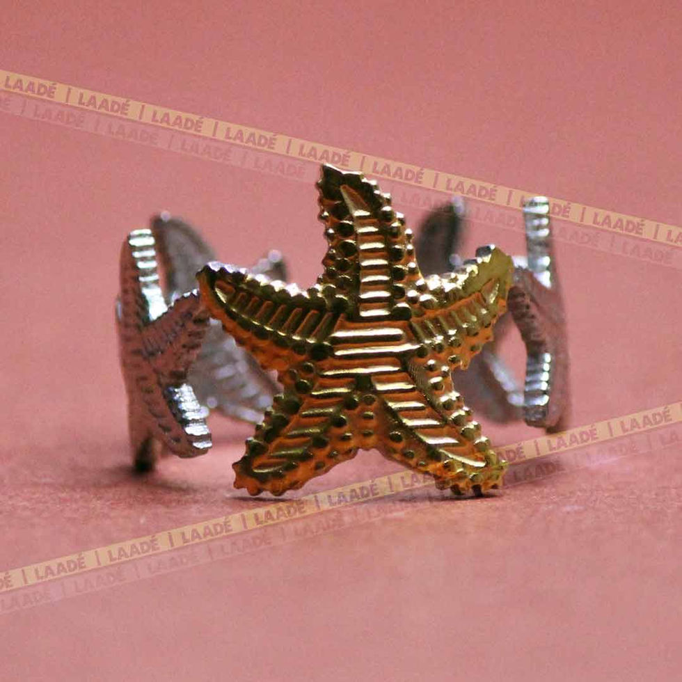 Shine with coastal elegance — the Golden Star Tide Adjustable Ring from Laadé brings the beauty of the ocean to your fingertips. Designed with a stunning dual-tone starfish motif, this open-style ring is crafted from premium stainless steel and coated with real PVD gold for lasting shine. Its adjustable fit makes it a perfect choice for both everyday wear and special occasions.